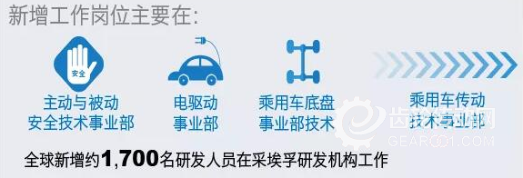 2017年,采埃孚研發(fā)支出為22億歐元,相比2016年增長(zhǎng)約15%。在今年,值得一題的是,集團(tuán)在全球范圍內(nèi)的研發(fā)投入將超過(guò)20億歐元,用于研發(fā)先進(jìn)的電驅(qū)動(dòng)產(chǎn)品、變速器的混合動(dòng)力技術(shù)、車輛安全系統(tǒng)以及自動(dòng)駕駛技術(shù)。換言之,今年集團(tuán)研發(fā)支出在預(yù)算中的占比將從6.1%提高到約6.5%。與此同時(shí),采埃孚也將會(huì)持續(xù)其在不動(dòng)產(chǎn)、工廠以及設(shè)備上的投資(2017年投資額為14億歐元),包括計(jì)劃興建兩座生產(chǎn)電驅(qū)動(dòng)部件的工廠。