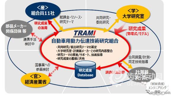 對(duì)于TRAMI的作用,TRAMI給出了三點(diǎn):“圍繞動(dòng)力傳動(dòng)技術(shù),引領(lǐng)產(chǎn)業(yè)界和學(xué)界合作進(jìn)行基礎(chǔ)及應(yīng)用研究;充實(shí)研究成果數(shù)據(jù)庫(kù),實(shí)現(xiàn)驅(qū)動(dòng)領(lǐng)域技術(shù)知識(shí)的積累和活用;進(jìn)一步擴(kuò)充研究,進(jìn)行產(chǎn)學(xué)官的聯(lián)動(dòng)。”