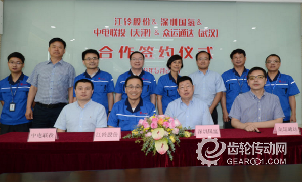 5月24日,江鈴汽車與合作伙伴深圳國氫、中電聯投(天津)、眾運通達(武漢)三方戰略合作簽約儀式在江鈴汽車總部舉行。簽約內容包括2018年超過3000輛凱銳EV電動輕卡采購協議及首期500輛訂單簽約。這筆訂單讓江鈴汽車向電動化轉型邁出重要一步。