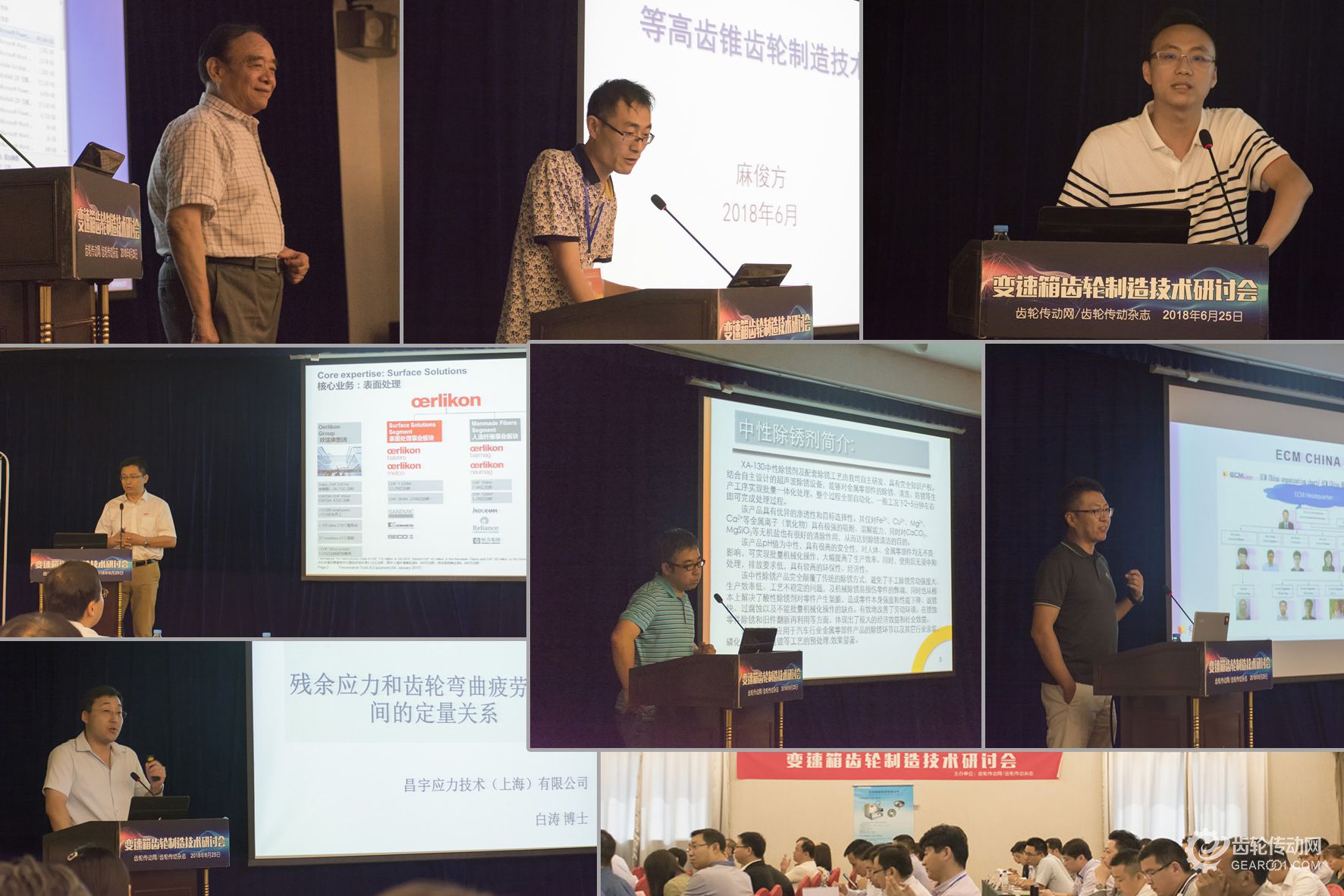 下午的會議,來自上海斯瑞文特種油品科技有限公司的陳安總監、上汽大眾汽車公司張書橋教授、歐瑞康巴爾查斯公司金敏經理、愛思恩梯(蘇州)機床有限公司金旭日次長、昌宇應力技術(上海)有限公司白濤博士、依西埃姆(北京)工業爐貿易有限公司的梁楓總經理、比亞迪汽車工業有限公司王國平副廠長分別就“斯瑞文中性除銹工藝介紹”、“智能化電動化趨勢下汽車制造工藝新發展”、“BALINIT® 新涂層助力齒輪加工”、“高速干切滾齒機與全自動嚙合儀在變速箱齒輪行業應用與介紹”,“殘余應力和齒輪彎曲疲勞極限間的定量關系”,“法國ECM低壓滲碳技術”和“電驅動低噪音齒輪的設計及制造”一一作了精彩的報告講解。