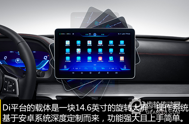 全新一代唐中控臺(tái)上配備的這塊屏幕分辨率可達(dá)1920*1080(高配版為14.6寸、中低配為12.8寸),搭載8核心處理器,3G內(nèi)存、32G容量,在硬件層面可以媲美目前主流的智能手機(jī),這是系統(tǒng)得以流暢運(yùn)行的基礎(chǔ)。屏幕可自行控制旋轉(zhuǎn),而系統(tǒng)也會(huì)自動(dòng)根據(jù)顯示內(nèi)容旋轉(zhuǎn)屏幕,以獲得最佳的操作體驗(yàn)。