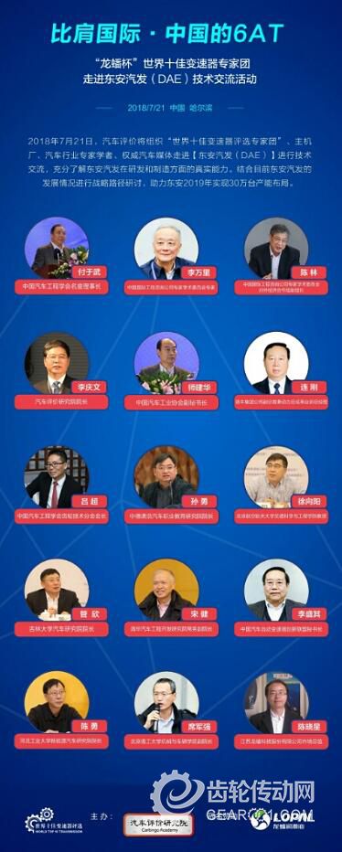 2018年7月21日,汽車評價將組織龍蟠杯“世界十佳變速器評選專家團”、汽車行業專家學者、權威汽車媒體走進【東安汽發(DAE)】進行技術交流,充分了解東安汽發在研發和制造方面的真實能力。結合目前東安汽發的發展情況進行戰略路徑研討,助力東安2019年實現30萬臺產能布局。