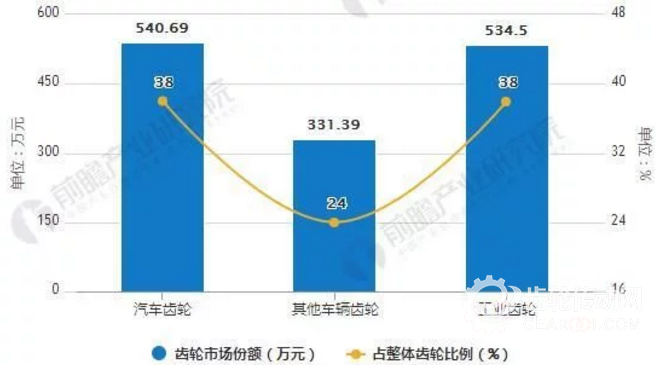 在我國龐大的齒輪市場中,車輛齒輪的市場份額達到62%,工業(yè)齒輪占38%,其中,汽車齒輪又占車輛齒輪的 62.1%,即占整體齒輪市場的38%,其他車輛齒輪占整體齒輪市場的24%。