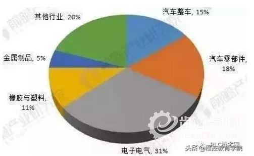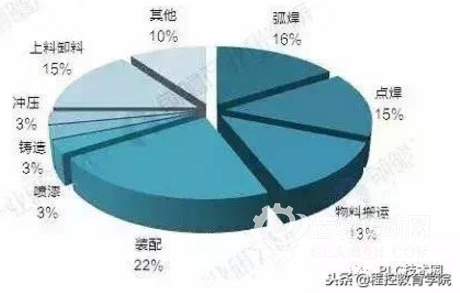 從產品類型來看,當前在中國各行業工業機器人的使用百分比分別是:弧焊占16%、點焊占15%、物料搬運占13%,裝配占22%、噴漆占3%、鑄造占3%、沖壓占3%、上料卸料占15%、碼垛、檢測、研磨拋光和激光加工等復雜作業占10%。