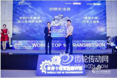 吉利動力總成研究院副院長林霄喆(左一)向清華大學汽車工程系捐贈獲獎變速器