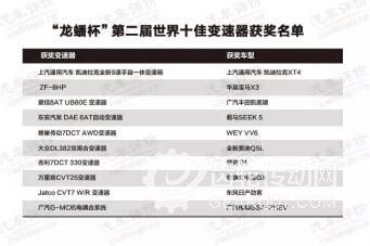 “龍蟠杯”第二屆世界十佳變速器獲獎名單
