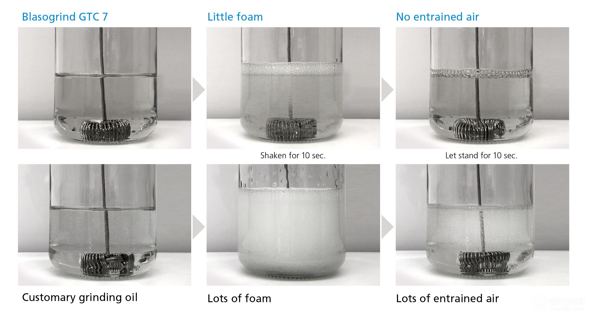 具有高磨削性能的新品Blasogrind GTC 7則是專為工具磨削加工而研發(fā)的。該磨削油的基礎(chǔ)油由天然氣轉(zhuǎn)化得來,精密的配方確保了更高的切屑去除率、更長的使用壽命以及極高的表面質(zhì)量。最重要的是,空氣快速釋放性可確保加工實(shí)現(xiàn)最佳磨削性能,防止刀具產(chǎn)生微裂紋,并且可應(yīng)用于小型冷卻液箱,不會(huì)因產(chǎn)生大量氣泡而停機(jī)。在中國國際機(jī)床展覽會(huì)的巴索展位,參觀者可以現(xiàn)場體驗(yàn)?zāi)ハ饔蛿嚢杵?,并親自見證Blasogrind GTC 7卓越的消泡性能。為了能清晰看到磨削工藝并營造舒適的工作環(huán)境,這款高性能磨削油具有無色無味且透明的特點(diǎn)。