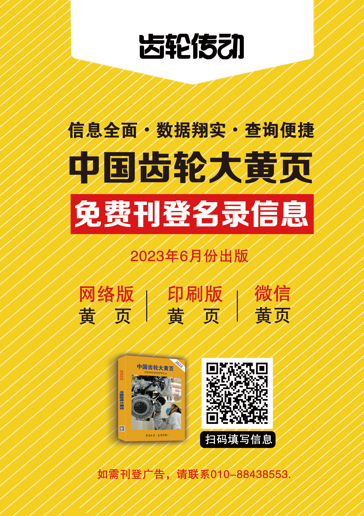 《黃頁》將按齒輪工業系統分類開展,同時重點突出網絡優勢,動態更新、整合企業數據庫信息,形成以互聯網、微信及移動互聯網動態黃頁與印刷版黃頁相互依托的綜合服務大數據平臺,并進一步結合商務采購便利性,制定獨特的分類、編排和索引體系,做到信息全面、數據翔實、查詢便捷,力爭能更好、更全面地服務于各企事業單位和行業市場用戶。