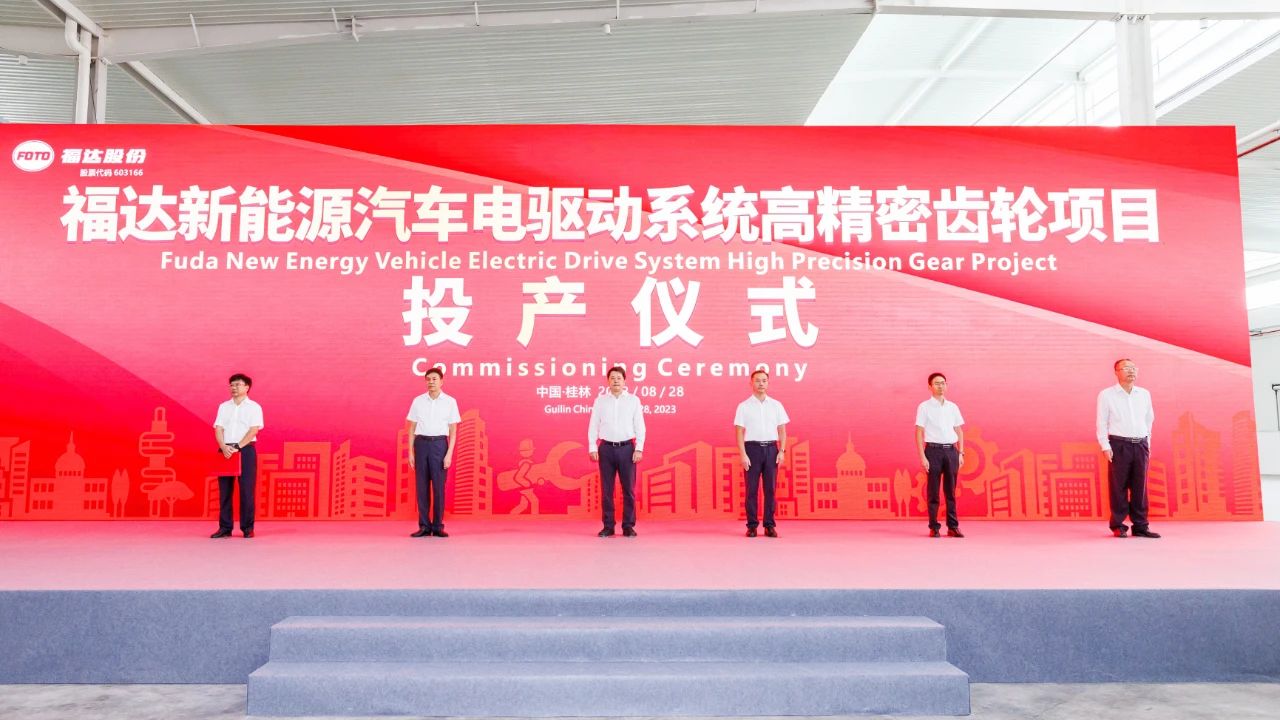 2023年8月28日,福達新能源汽車電驅動系統高精密齒輪項目(以下簡稱:福達新能源電驅齒輪項目)投產儀式在桂林福達股份有限公司新能源電驅科技分公司工廠內舉行。桂林市市長李楚、副市長王昕、市政府秘書長李一飛,臨桂區委書記石玉琳,區長何兵,福達股份董事長黎福超等領導出席投產儀式。王昕副市長宣布福達新能源汽車電驅動系統高精密齒輪項目投產,石玉琳書記主持投產儀式。桂林市、臨桂區有關部門領導、金融機構負責人、國內外知名主機廠、系統供應商代表、項目供應商、合作伙伴及福達股份干部員工等300多人參加了投產儀式