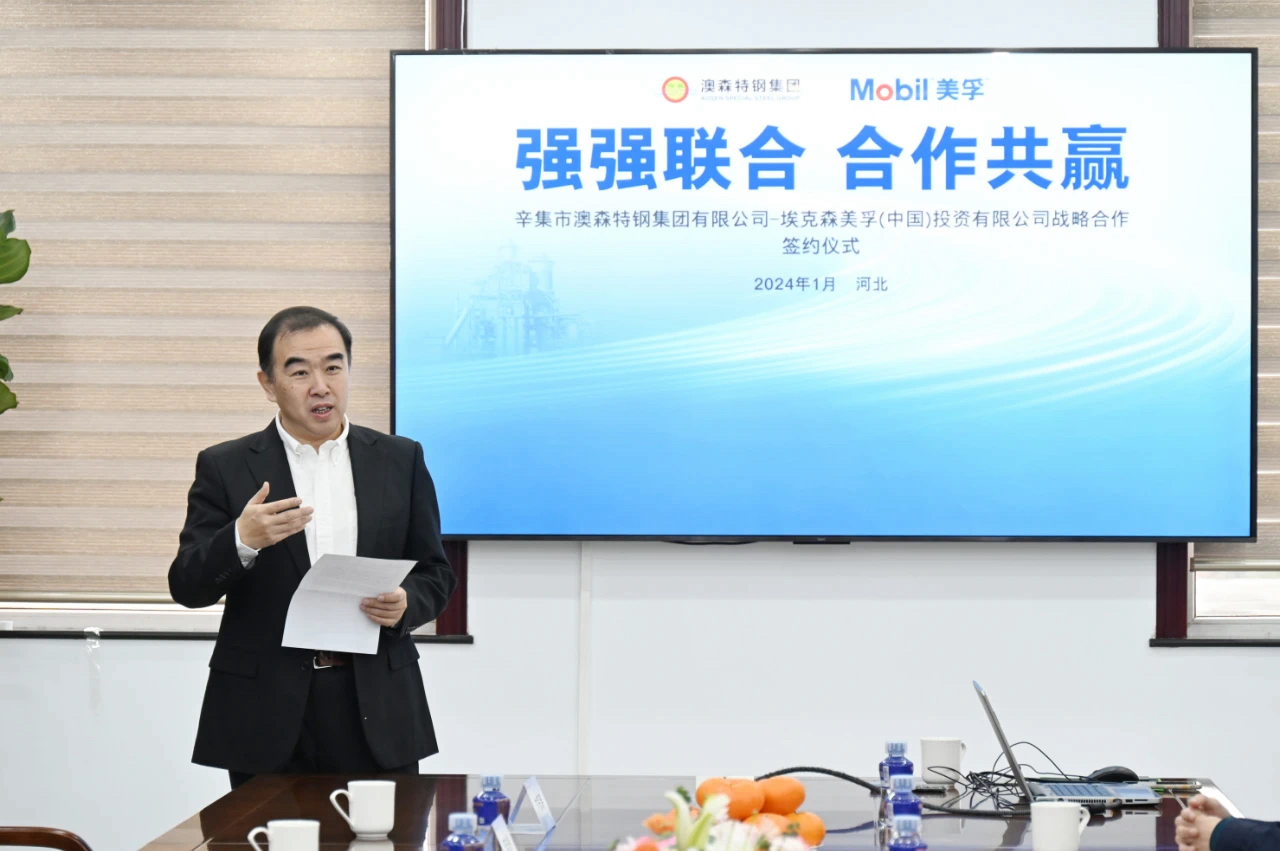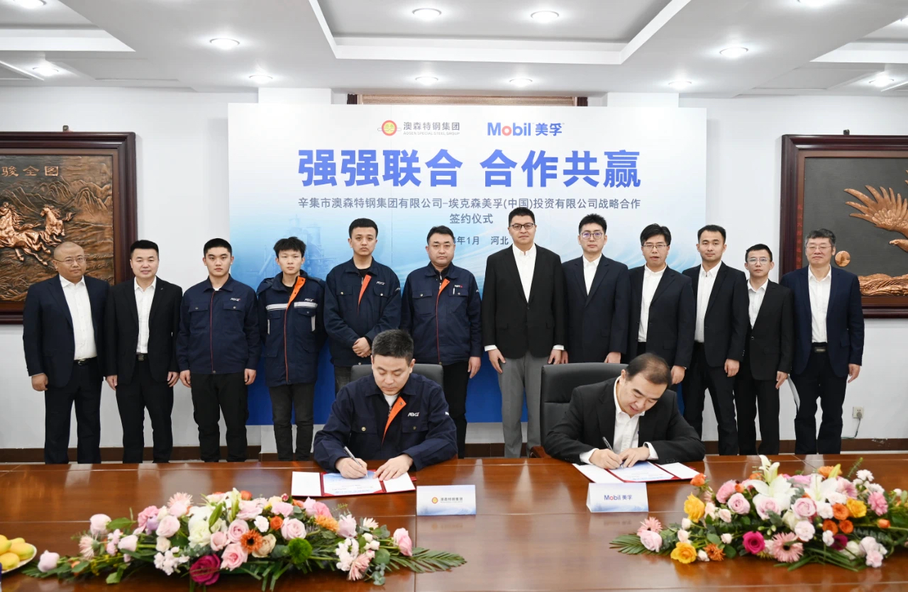 2024年1月16日,河北辛集——近日,埃克森美孚(中國)投資有限公司(簡稱 “埃克森美孚中國” )和辛集市澳森特鋼集團有限公司(簡稱 “澳森特鋼集團” )在澳森特鋼集團總部成功簽署全面戰(zhàn)略合作框架協(xié)議。雙方將利用各自領(lǐng)域的專業(yè)能力和技術(shù)優(yōu)勢,進一步強化在潤滑產(chǎn)品、服務(wù)和管理方面的合作。