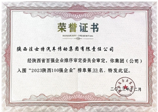 日前,陜西省企業家協會發布2023陜西100強企業和陜西民營50強企業榜。陜西法士特汽車傳動集團有限責任公司榮登榜單,位列陜西百強企業榜單第33位。