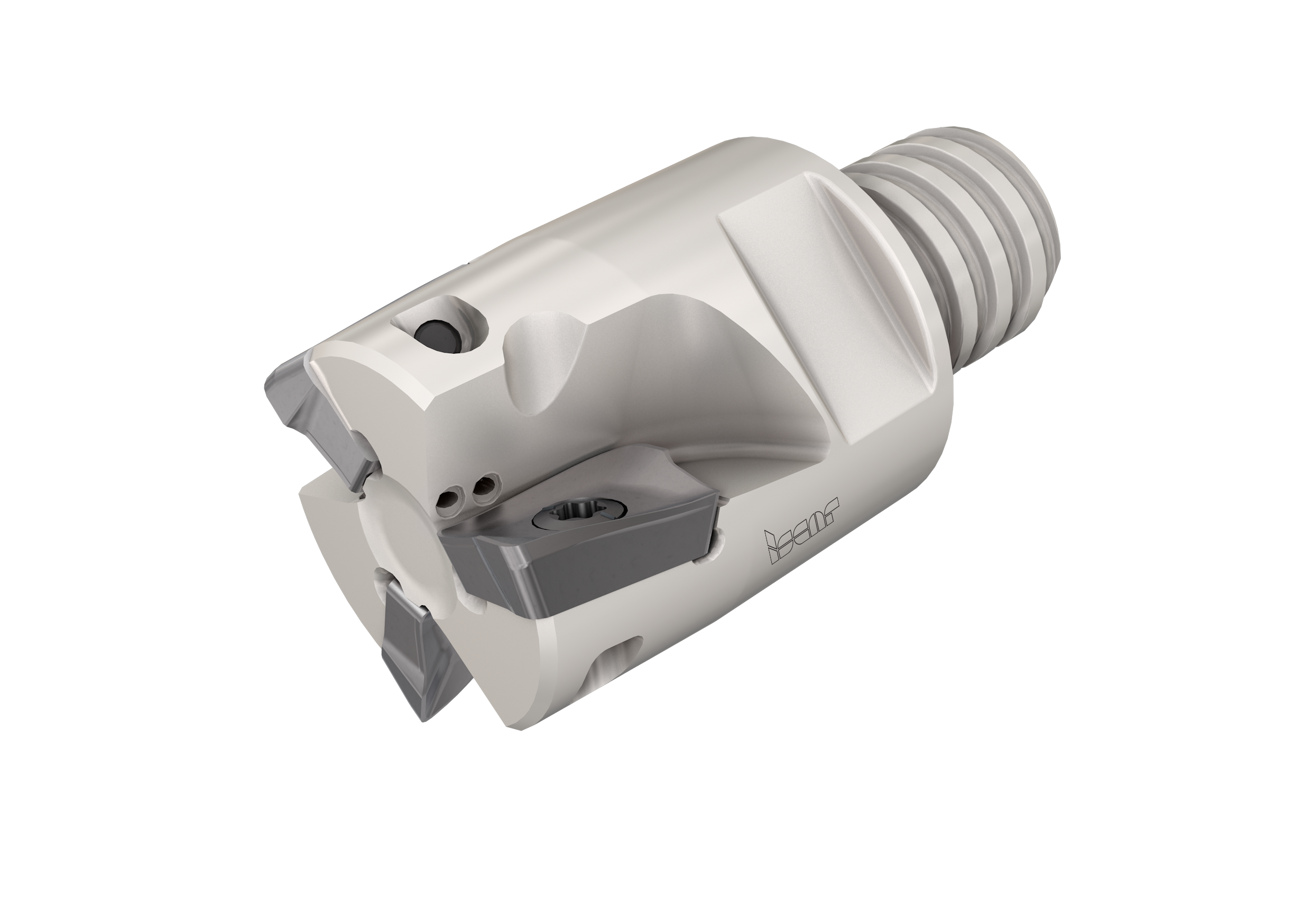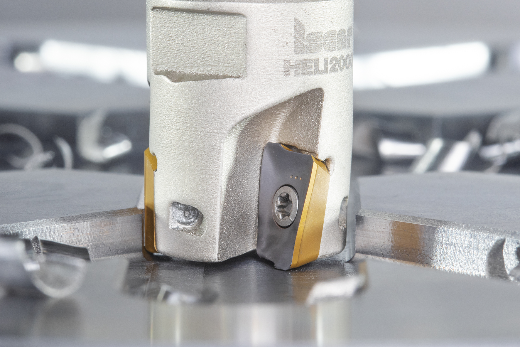 圖2 - 具有三角形刀片的HELI-3-MILL面銑刀。其刀片擁有3個可轉位螺旋切削刃。