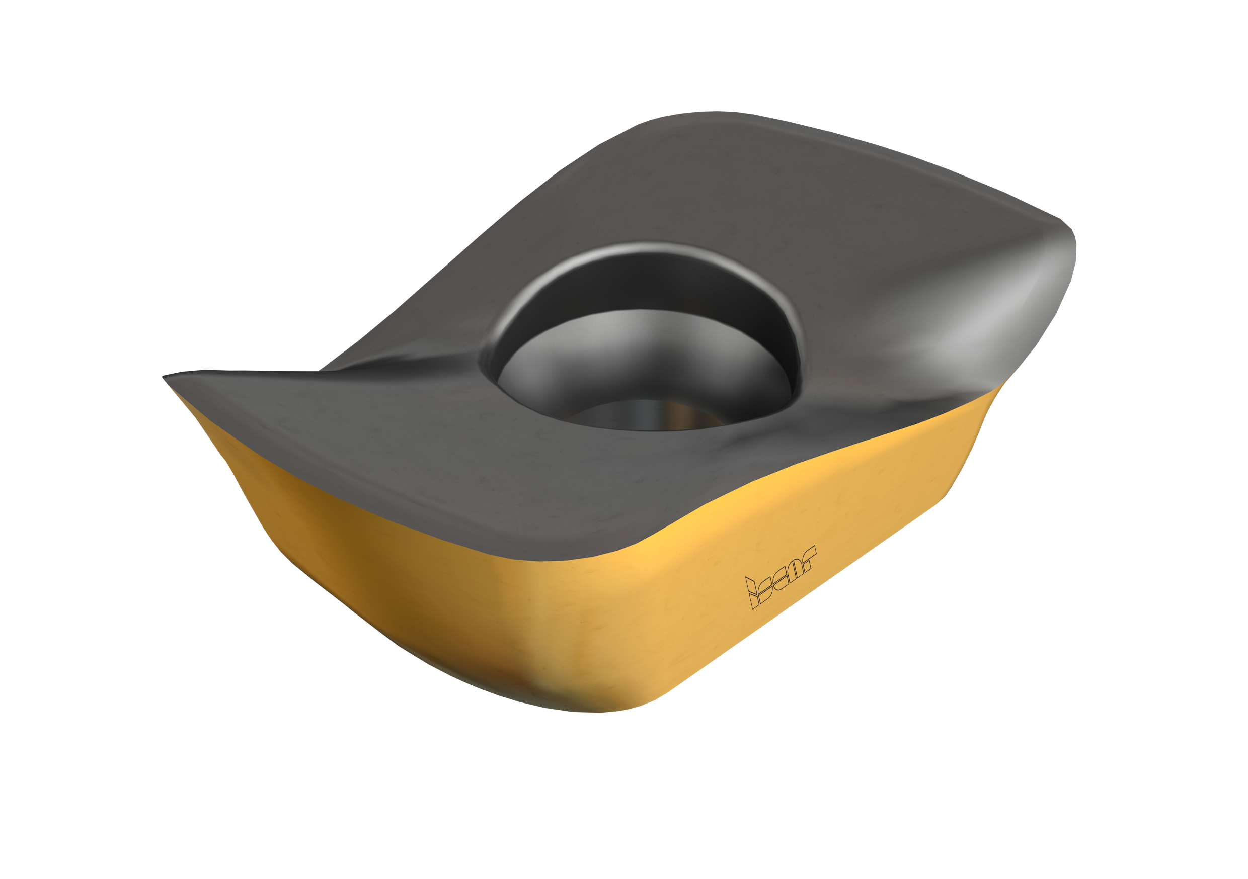 為了最大化硬質合金的使用效率,我們又開始對刀片進行新一輪的優化。通過將螺旋型切削刃成功應用到三角形刀片中,我們實現了這一目標。三角形刀片不僅代表其擁有三個切削刃,還帶來了其他的優勢。與其他刀片形狀相比,在切削刃長度相等的情況下,三角形形狀可獲得更寬的刀桿芯部空間。這使得冷卻孔徑尺寸增大,同時可以使用較大螺紋的刀片鎖緊螺釘。這樣一來,便提高了刀片的夾緊剛性,從而提高整個銑削刀具組件的耐用度。此外,三角形形狀還增強了其坡走銑削能力。