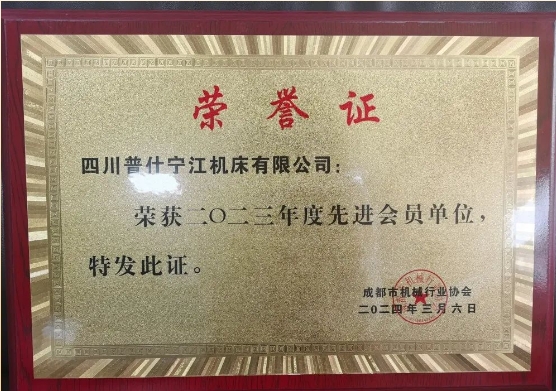 近日,普什寧江公司榮獲成都市機械行業協會頒發的“2023年度先進會員”榮譽稱號。
