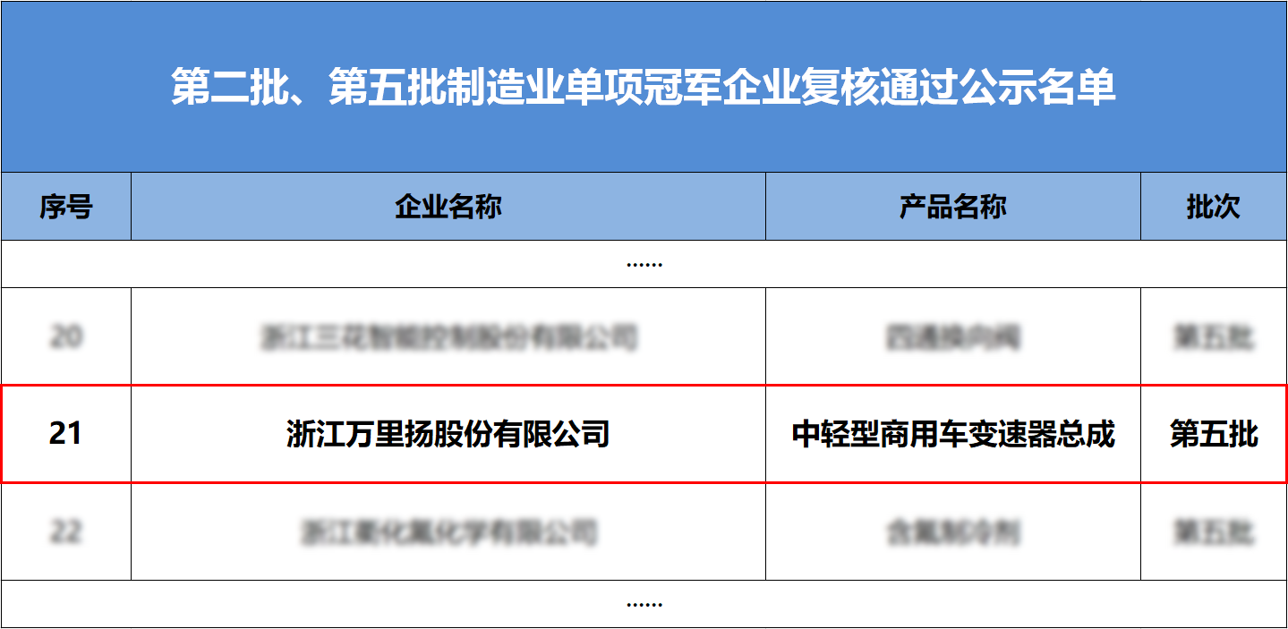 近日,國家工信部公布了第八批制造業單項冠軍企業遴選認定和第二批、第五批制造業單項冠軍企業復核認定結果,萬里揚繼2020年被認定為第五批制造業單項冠軍企業后,再次通過制造業單項冠軍企業復核認定。