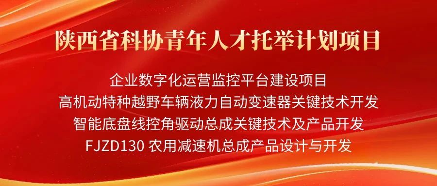 4月10日,2024年陜西省科協(xié)青年人才托舉計(jì)劃項(xiàng)目評審結(jié)果公示結(jié)束。法士特集團(tuán)申報(bào)的《企業(yè)數(shù)字化運(yùn)營監(jiān)控平臺建設(shè)項(xiàng)目》《高機(jī)動特種越野車輛液力自動變速器關(guān)鍵技術(shù)開發(fā)》《智能底盤線控角驅(qū)動總成關(guān)鍵技術(shù)及產(chǎn)品開發(fā)》《FJZD130 農(nóng)用減速機(jī)總成產(chǎn)品設(shè)計(jì)與開發(fā)》4項(xiàng)科研課題成功入選。