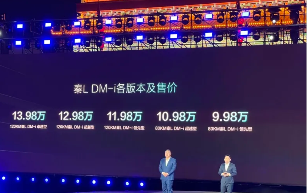 其他看不見的細節可以從一些網站上找到信息,比如說秦L的油箱大小提升到了65升,作為參考此前秦PLUS DM-i的油箱是42升。另外,兩款車的電池組容量、純電續航也有了對應升級,兩車均提供10.08kW·h和15.874kW·h的刀片電池組,純電續航提升到了80km和120公里,進一步提升了實用性。內飾也可以簡單說一下,其儀表屏統一為8.8英寸,而中控屏則視配置不同分為12.8和15.6英寸,以日常導航、常規的影音娛樂角度看已經足夠。