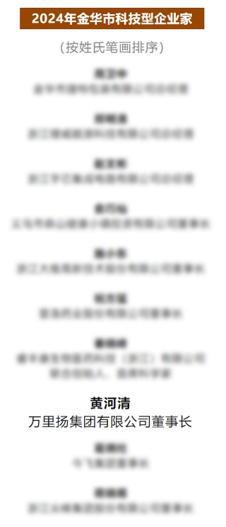 此次獲評該項榮譽,既是對黃河清董事長在創新戰略、創新能力和創新手段的肯定,同時也是對以黃河清董事長為首的董事會大力培養創新團隊,注重創新投入、知識產權保護和創新成果分享的褒獎。未來,公司將在黃河清董事長的帶領下,繼續在科技創新的道路上勇往直前,以更大力度打造新質生產力,為公司及金華高質量發展作出更多貢獻。
