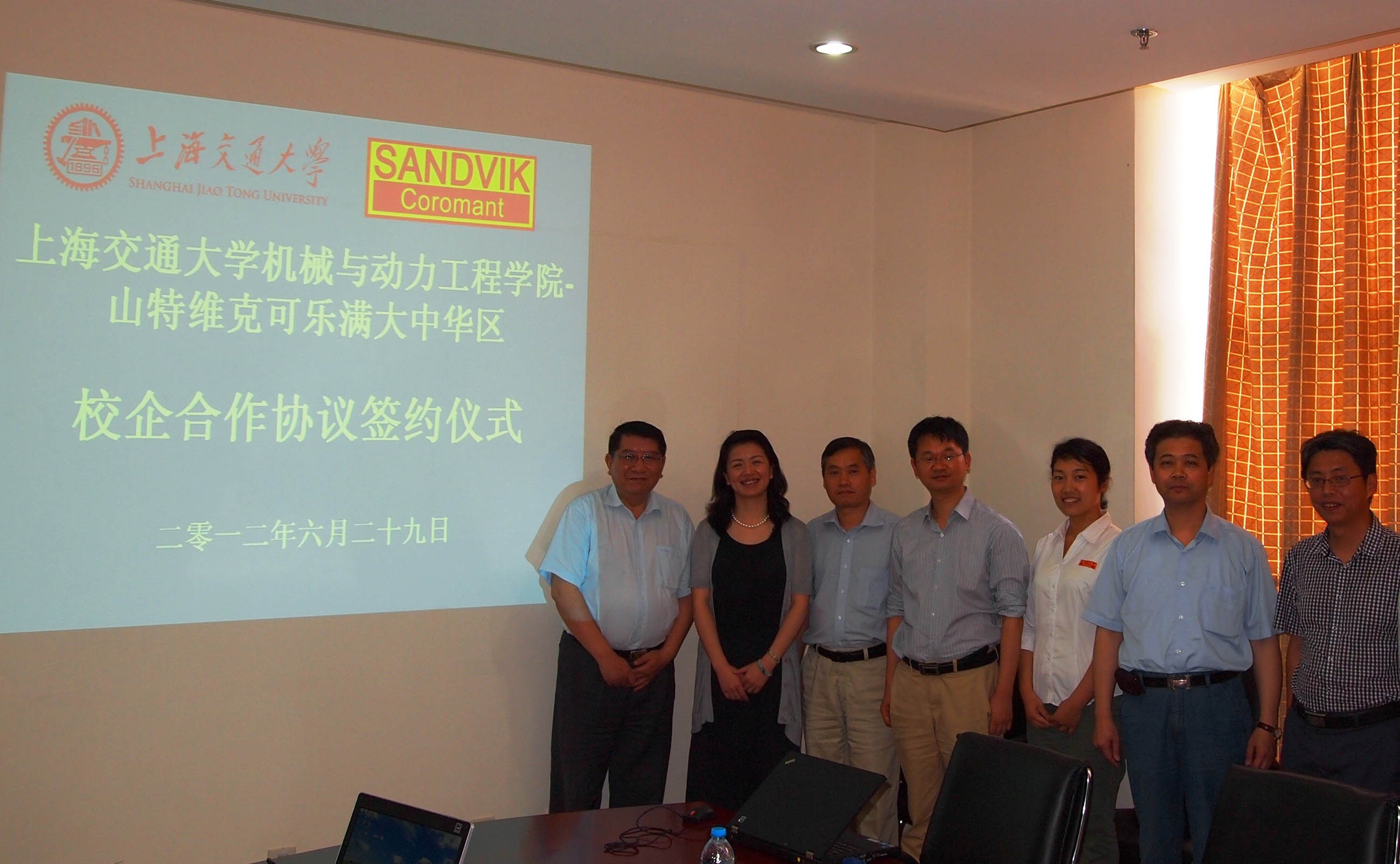 2012年6月29日上午,上海交通大學機械與動力工程學院和山特維克可樂滿大中華區校企合作協議正式簽署。出席簽約儀式的嘉賓有山特維克可樂滿大中華區市場與業務總監彭曉鴻女士、上海交通大學機械與動力工程學院黨委書記陶燕敏先生、副院長劉應征先生、陳明教授和制造技術與裝備自動化研究所的師生們。