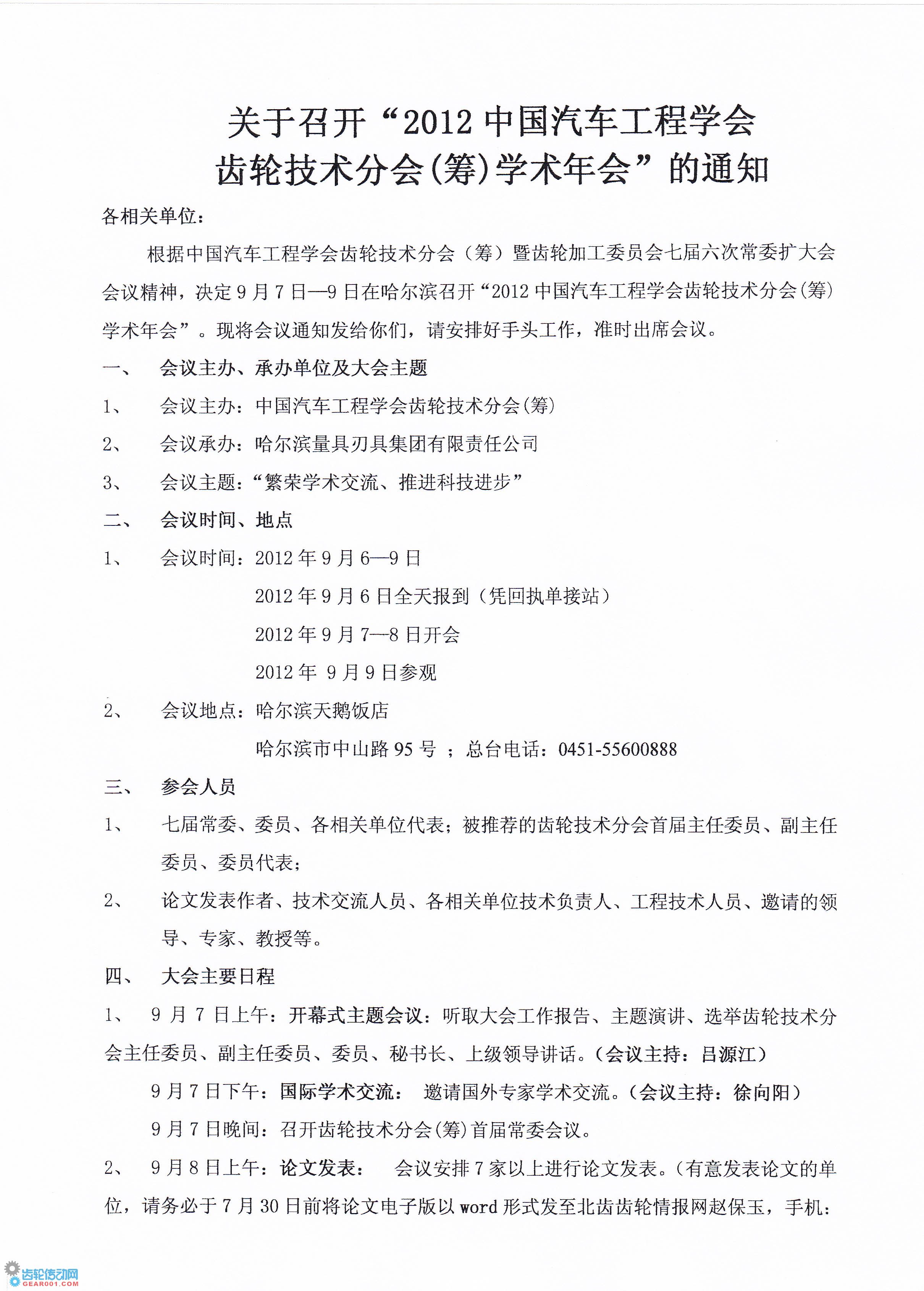 關于召開中國汽車工程學會齒輪技術分會(籌)年會會議通知