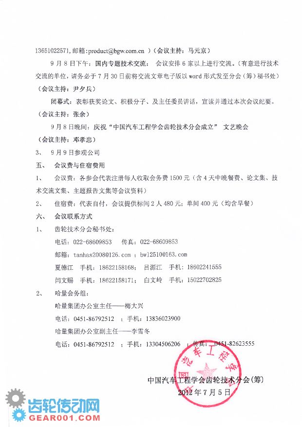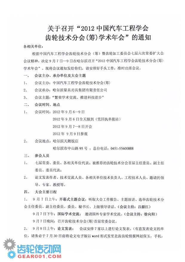 關于召開“中國汽車工程學會齒輪技術分會(籌)學術年會”的通知