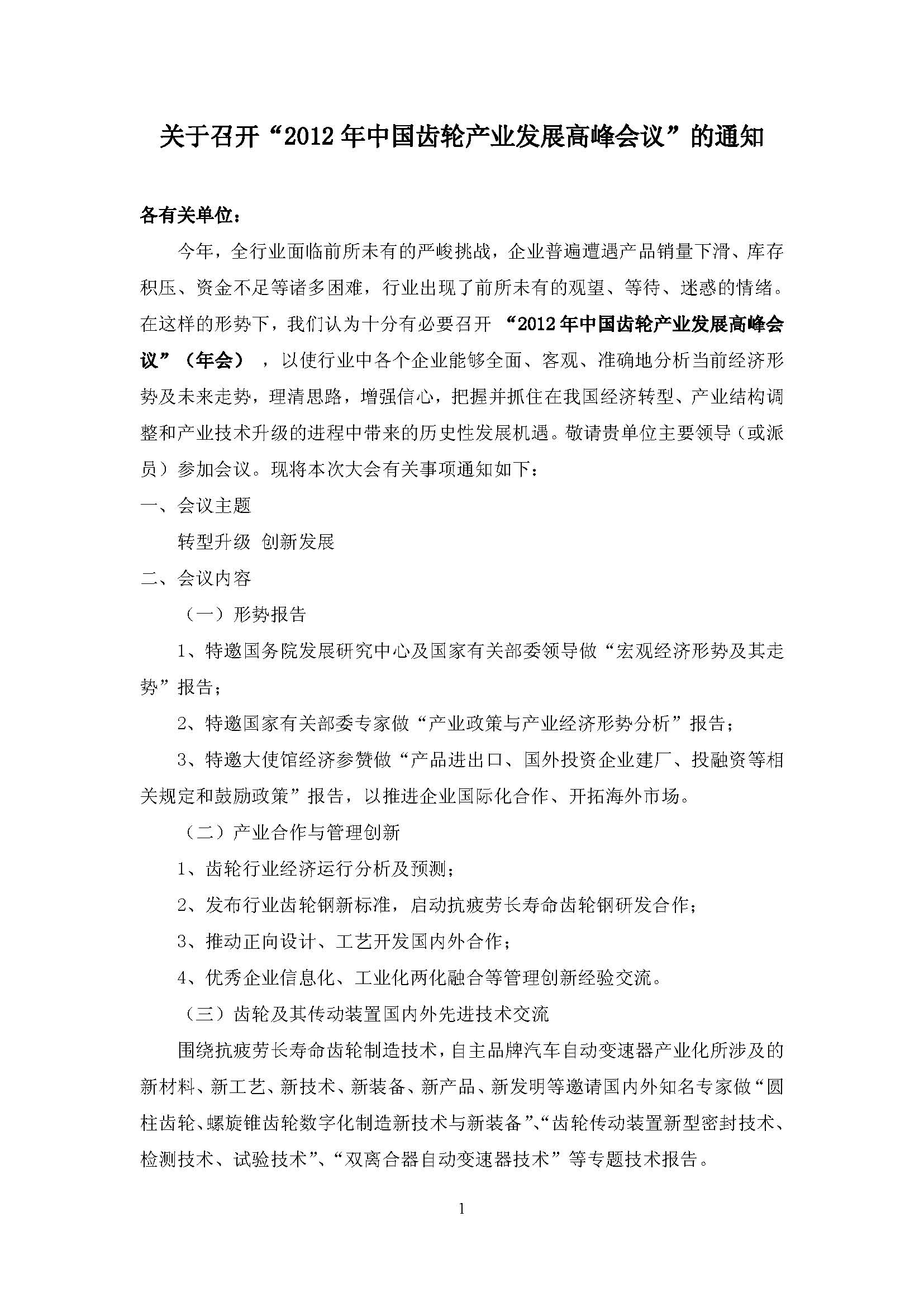 關于召開“2012年中國齒輪產業發展高峰會議”通知
