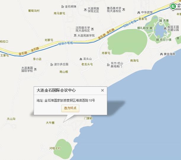 酒 店:大連金石國際會議中心(五星級) 地址:金石灘國家旅游度假區海濱西路18號