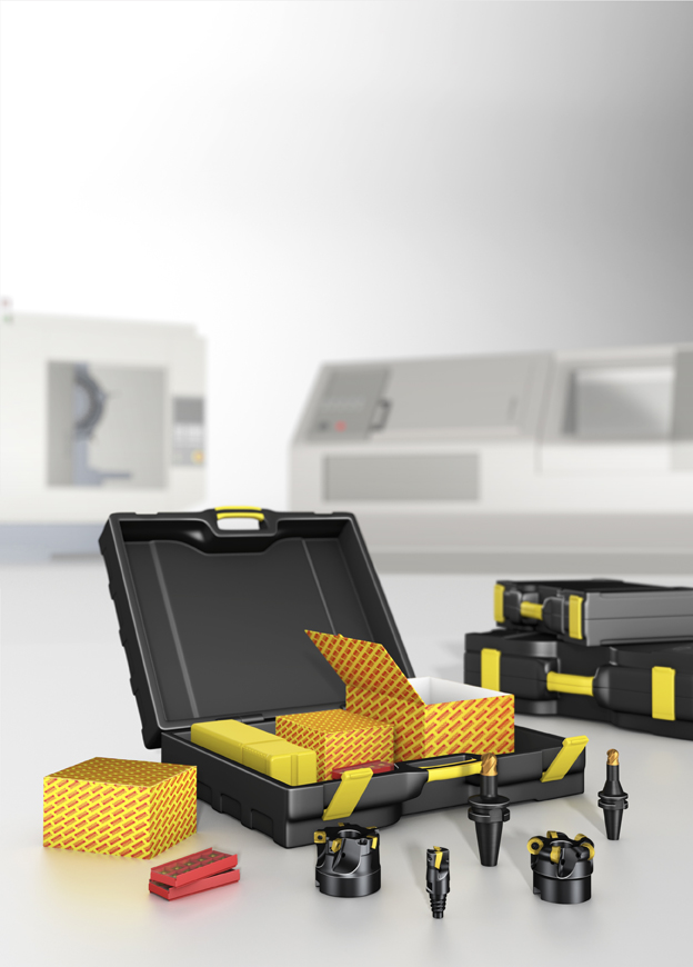 圖2- 我們為常見的車削中心、加工中心和走心機床配置了66種適用于不同機型的啟動工具包。刀具被裝在一個高質量的便攜塑料手提箱內整體交付。