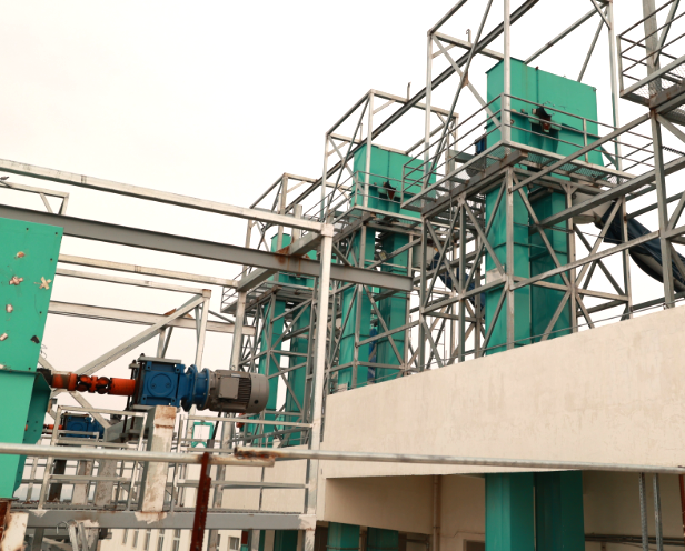 思豐新產線由多個環節組成,包括斗提、刮板輸送機、鏈板輸送機、絞龍、磨粉機和關風器等,接下來,我們聚焦在斗提和刮板輸送機這兩個環節上。