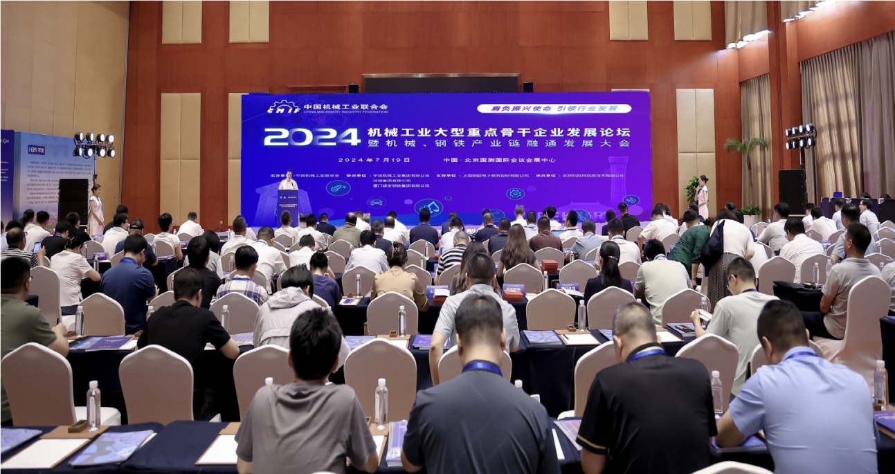 7月19日,由中國機械工業聯合會主辦的“2024年機械工業大型重點骨干企業發展論壇暨機械、鋼鐵產業鏈融通發展大會”在京召開。大會以“融合創新、共謀發展”為主題,探討在新時代背景下,如何推動機械與鋼鐵產業鏈的深度融合,促進產業轉型升級與高質量發展。工業和信息化部運行監測協調局副局長王文遠(視頻連線),中國機械工業聯合會黨委常委、執行副會長羅俊杰,中國鋼鐵工業協會黨委常委、副會長唐祖君,中國汽車工業協會副秘書長陳士華,以及來自機械、鋼鐵及相關行業的眾多領軍企業負責人、地方行業主管部門、有關協會負責人,新聞媒體記者近500人出席大會。