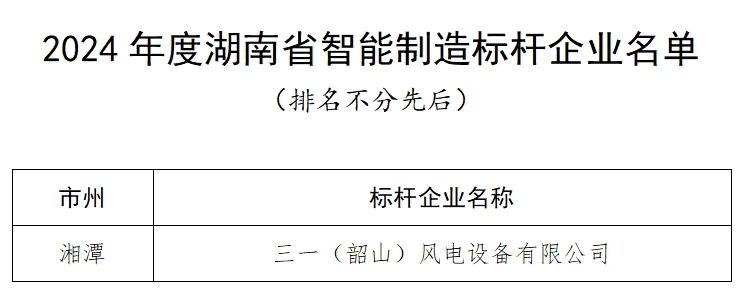近日,湖南省工業和信息化廳發布了2024年度湖南省智能制造標桿企業和標桿車間名單,三一(韶山)風電設備有限公司榮登“2024年度湖南省智能制造標桿企業名單”。