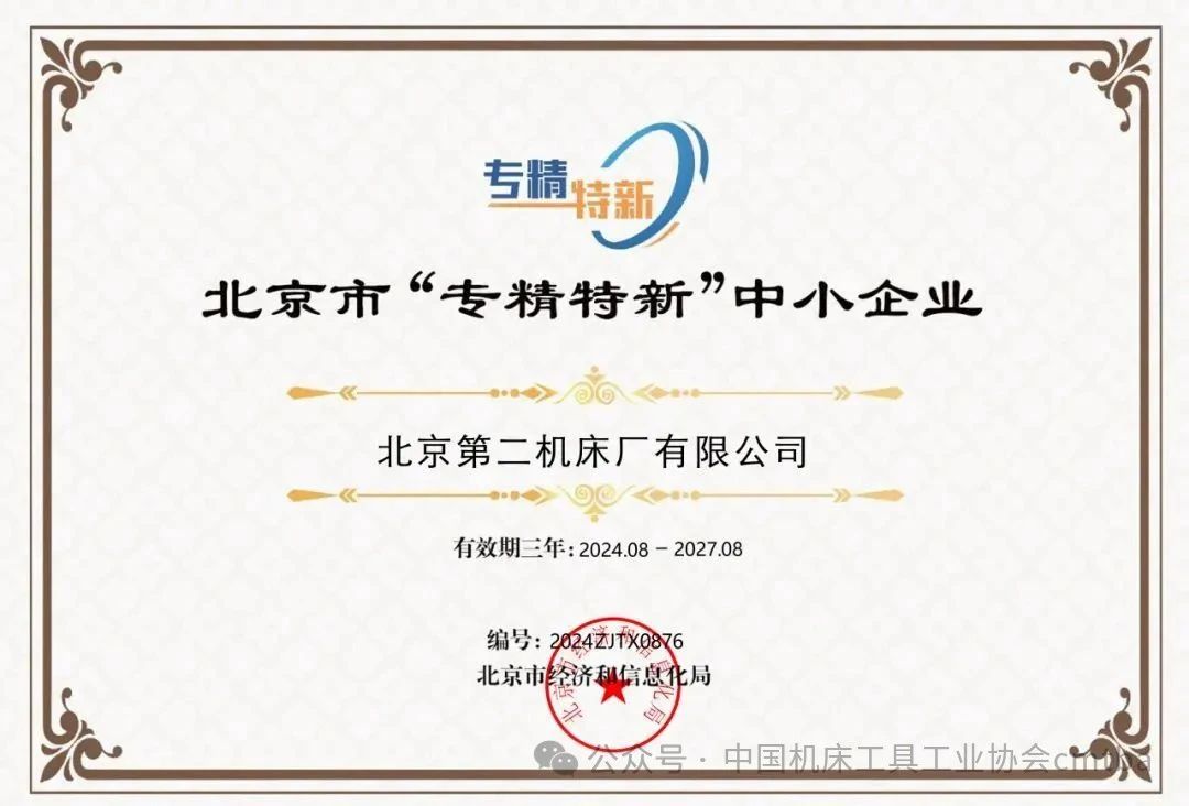 2024年8月,北京市經信局公布2024年第二季度北京市“專精特新”中小企業名單,北一機床所屬全資子公司北京第二機床廠有限公司(以下簡稱“北二機床”)成功入選,表明對北二機床在技術創新、市場競爭力、品牌影響力等方面的充分肯定。