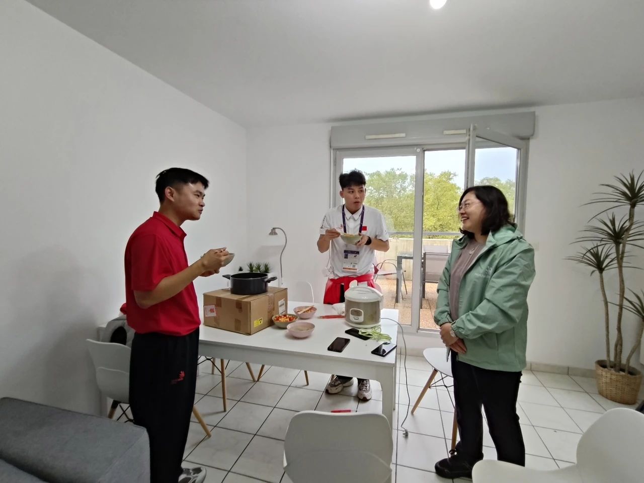 賽前,鄭麗梅副主任帶團員為選手送慰問品,關(guān)懷選手的心理狀態(tài)及和生活情況,為選手解壓、加油、助威,鼓勵選手以平常心面對世界級競爭對手。