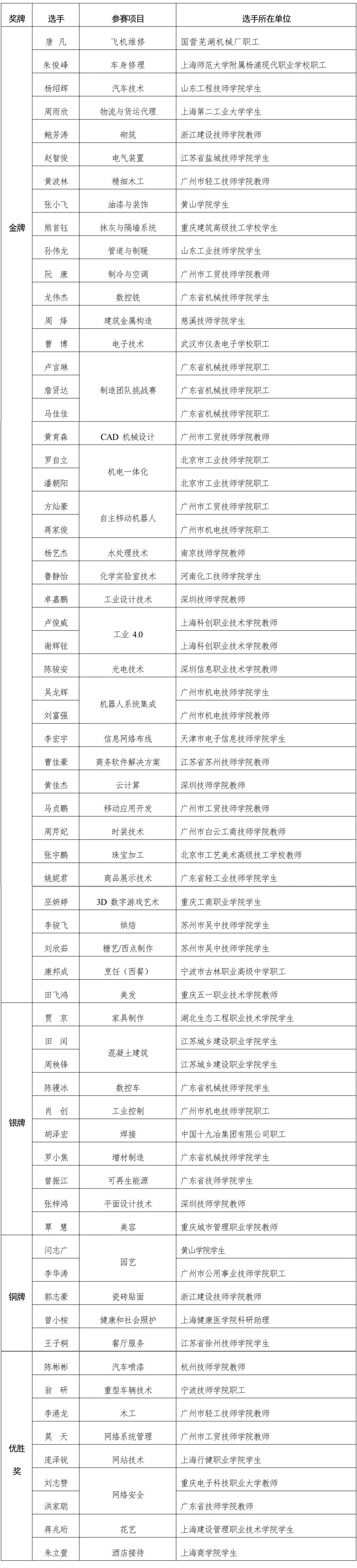 第47屆世界技能大賽中國代表團獎牌榜
