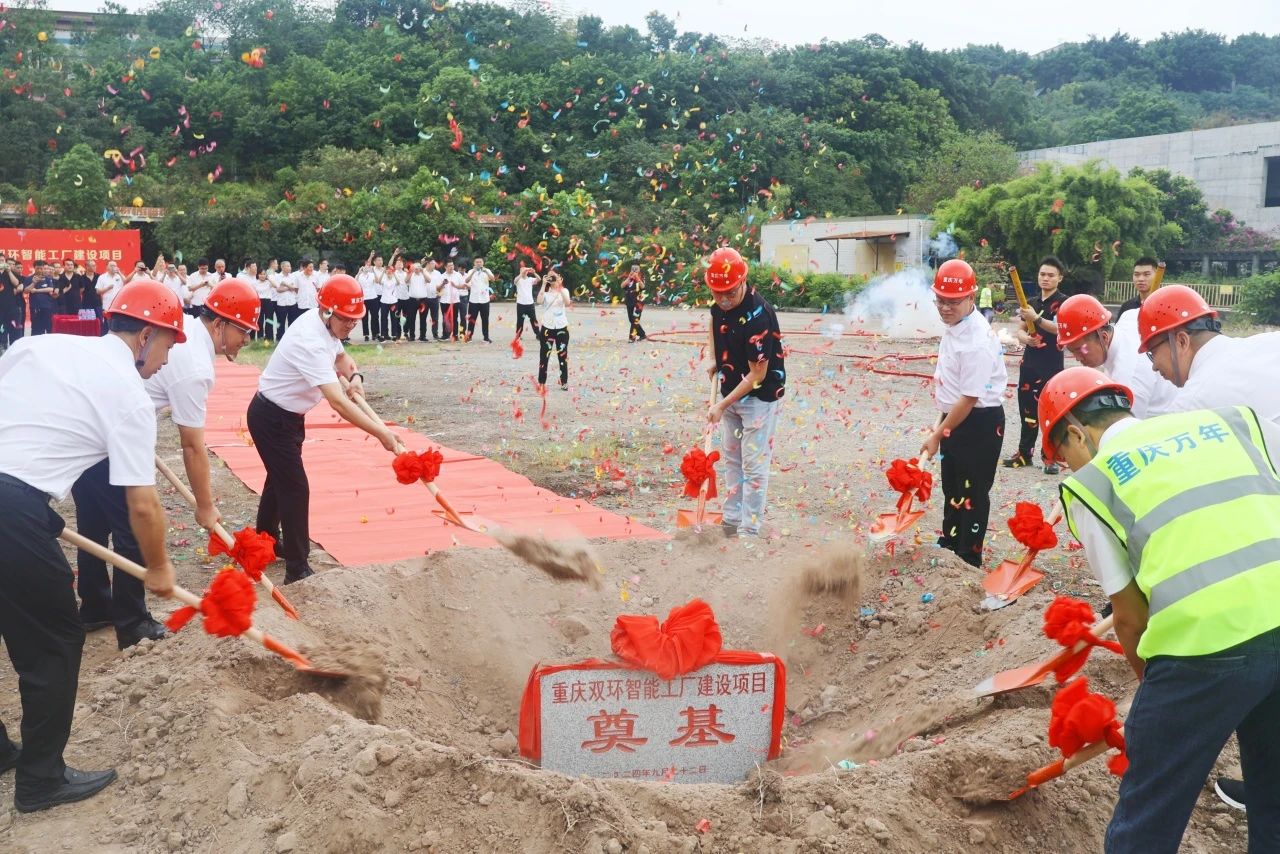 9月22日,重慶雙環智能工廠建設項目奠基儀式在園區內隆重舉行。重慶雙環總經理李支強、浙江公誠建設項目咨詢有限公司重慶分公司(監理單位)總經理李喆、重慶萬年智慧城市建設有限公司(施工單位)總經理王東平等領導與嘉賓出席奠基儀式,重慶雙環各部門負責人及相關員工、監理單位員工代表、施工單位員工代表等110余人參加儀式,共同見證這一歷史性的時刻。