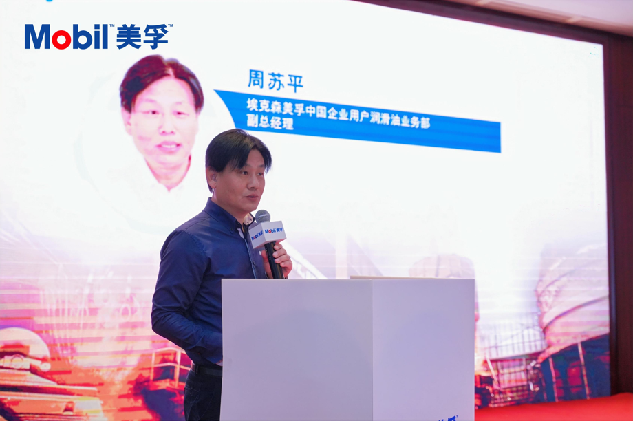埃克森美孚中國企業(yè)用戶潤滑油業(yè)務部副總經理周蘇平進行開場致辭