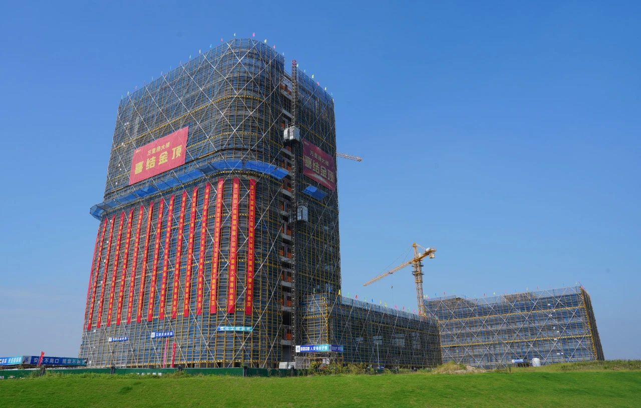 萬里揚總部項目占地面積25.13畝,其中大樓建筑面積2萬平方米,為12層全幕墻智能化樓宇,是集科技研發、智能制造、數控中心、萬里揚學院于一體的綜合型中心。項目于2024年3月20日正式開工建設,于今天順利迎來大樓結頂的重要時刻,這是萬里揚發展歷程中又一個重要里程碑,大樓的建設將進一步提升公司的硬件設施水平,為萬里揚未來發展奠定了更加堅實的基礎。