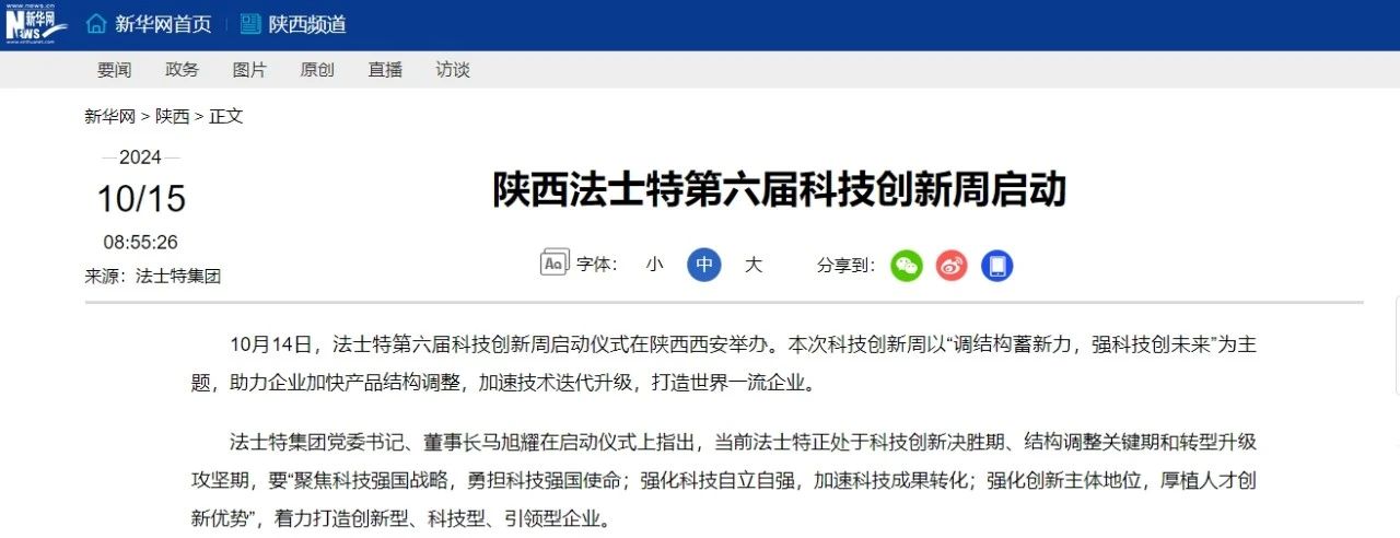 10月14日,法士特第六屆科技創新周啟動儀式在陜西西安舉辦。本次科技創新周以“調結構蓄新力,強科技創未來”為主題,助力企業加快產品結構調整,加速技術迭代升級,打造世界一流企業。