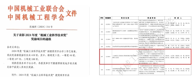 近日,在機械工業領域極具權威性的2024年度“機械工業科學技術獎”評選中,江蘇省減速機產品質量監督檢驗中心所在團隊的“工業機器人核心零部件測試與評價”項目榮獲科技進步二等獎,這是近5年內該中心第二次獲此殊榮。