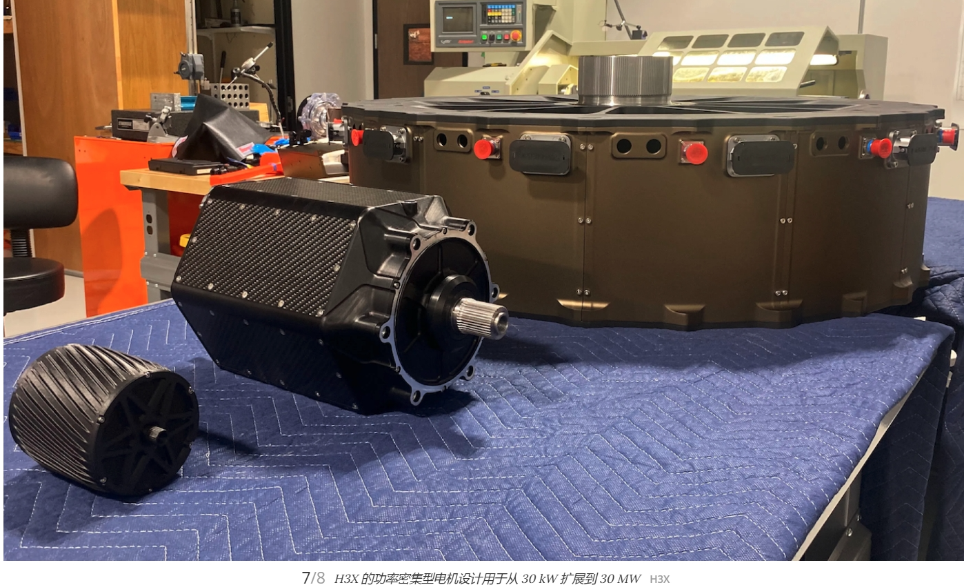 H3X 估計,目前的飛機推進系統(tǒng)在 3 至 4 kW/kg 范圍內(nèi)運行,該機構(gòu)還預(yù)測,在某些飛機中,當將現(xiàn)有推進系統(tǒng)換成功率密集的裝置時,航程可以有效地增加一倍。作為此計算的一部分,使用 HPDM 電機節(jié)省的重量將分配給增加的電池容量。