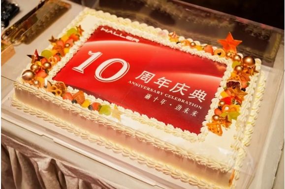 在大家熱烈的掌聲中,哈勒智能董事長(zhǎng)柯亞仕博士帶領(lǐng)公司管理層一同上臺(tái),切開(kāi)充滿(mǎn)祝福的生日蛋糕,祝福哈勒十周年生日快樂(lè)!