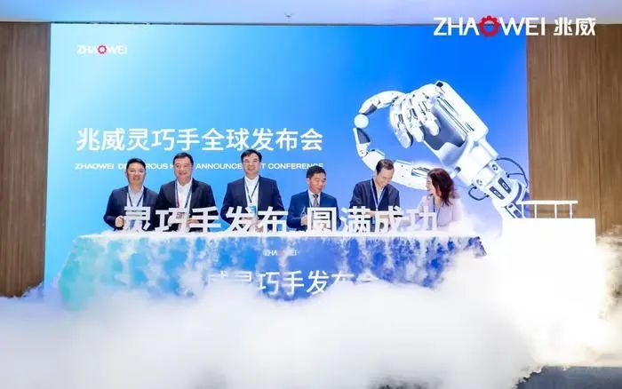 隨后,兆威機電董事長李海周、副董事長謝燕玲、總經(jīng)理葉曙兵等公司高層,與政府機構(gòu)代表、行業(yè)專家代表、合作伙伴代表等特邀嘉賓共同登臺,為靈巧手的揭幕儀式拉開序幕。隨著干冰臺煙霧散開,兆威靈巧手緩緩升起。伴隨震撼的視覺效果,背景屏幕上浮現(xiàn)出“靈巧手發(fā)布 圓滿成功”字樣,全場嘉賓報以雷鳴般的掌聲,現(xiàn)場氣氛達(dá)到頂峰。媒體記者們紛紛舉起相機,記錄下兆威在機器人驅(qū)動領(lǐng)域這一里程碑式瞬間。