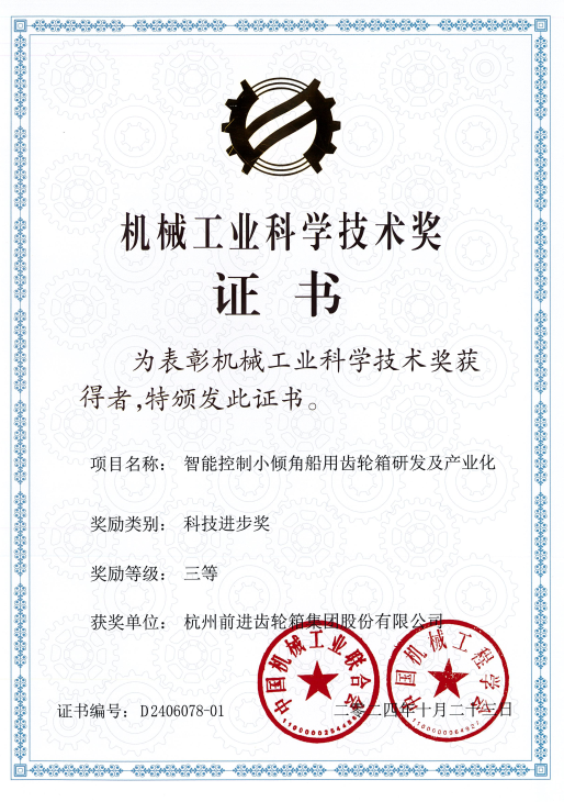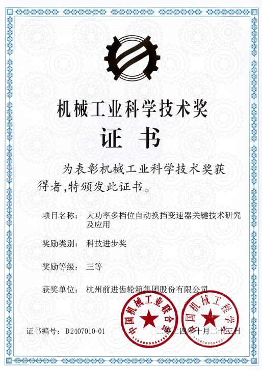 近日,中國機械工業聯合會、中國機械工程學會聯合組織的2024年度“機械工業科學技術獎”公布了獲獎名單。杭齒集團“大功率多檔位自動換擋變速器關鍵技術研究及應用”和“智能控制小傾角船用齒輪箱研發及產業化”兩個項目榮獲科技進步獎三等獎,這是對杭齒集團在機械工業領域所取得成果的高度肯定。