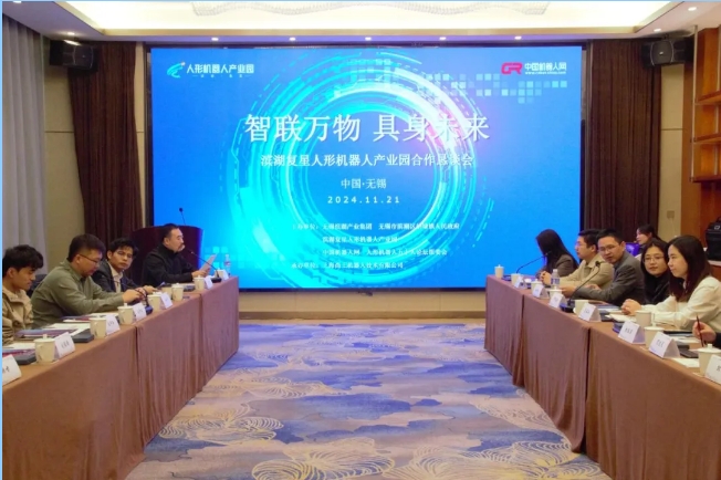 風(fēng)起東方,潮涌湖灣。11月21日,以“智聯(lián)萬物,具身未來”為主題的“濱湖人形機器人產(chǎn)業(yè)園合作懇談會”在無錫順利召開。本次會議由濱湖產(chǎn)業(yè)集團、胡埭鎮(zhèn)人民政府、濱湖復(fù)星人形機器人產(chǎn)業(yè)園、人形機器人五十人論壇組委會、中國機器人網(wǎng)共同主辦,濱湖產(chǎn)業(yè)集團、胡埭鎮(zhèn)政府、鼎星智造相關(guān)領(lǐng)導(dǎo)以及人形機器人行業(yè)20余位企業(yè)代表出席。會議就如何通過協(xié)同、共建、整合提升競爭優(yōu)勢,促進人形機器人產(chǎn)業(yè)高質(zhì)量發(fā)展等議題進行了深入探討與交流。