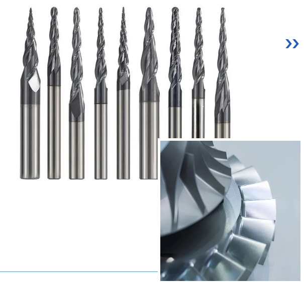 錐度球頭銑刀是一款結合了錐形與圓形鼻端設計的精密切削工具,它在工業加工領域中展現出卓越的性能。這種刀具的設計不僅確保了操作的穩定性,而且提供了深入切削的能力,全程保持加工過程的平穩性。錐形結構顯著增強了刀具的耐用性,而圓形鼻端的設計則賦予了刀具在精細加工中所需的靈活性與精確性。在葉輪葉盤的制造領域,錐度球頭銑刀因其能夠精確地雕刻復雜的三維形態而備受青睞。它能夠銑削出平滑的輪廓和精細的細節,對于制造高精度的葉輪葉片至關重要。此外,在精細銑削與復雜表面加工領域,該銑刀同樣表現出色,特別是在需要全程構建3D效果的應用場景中。