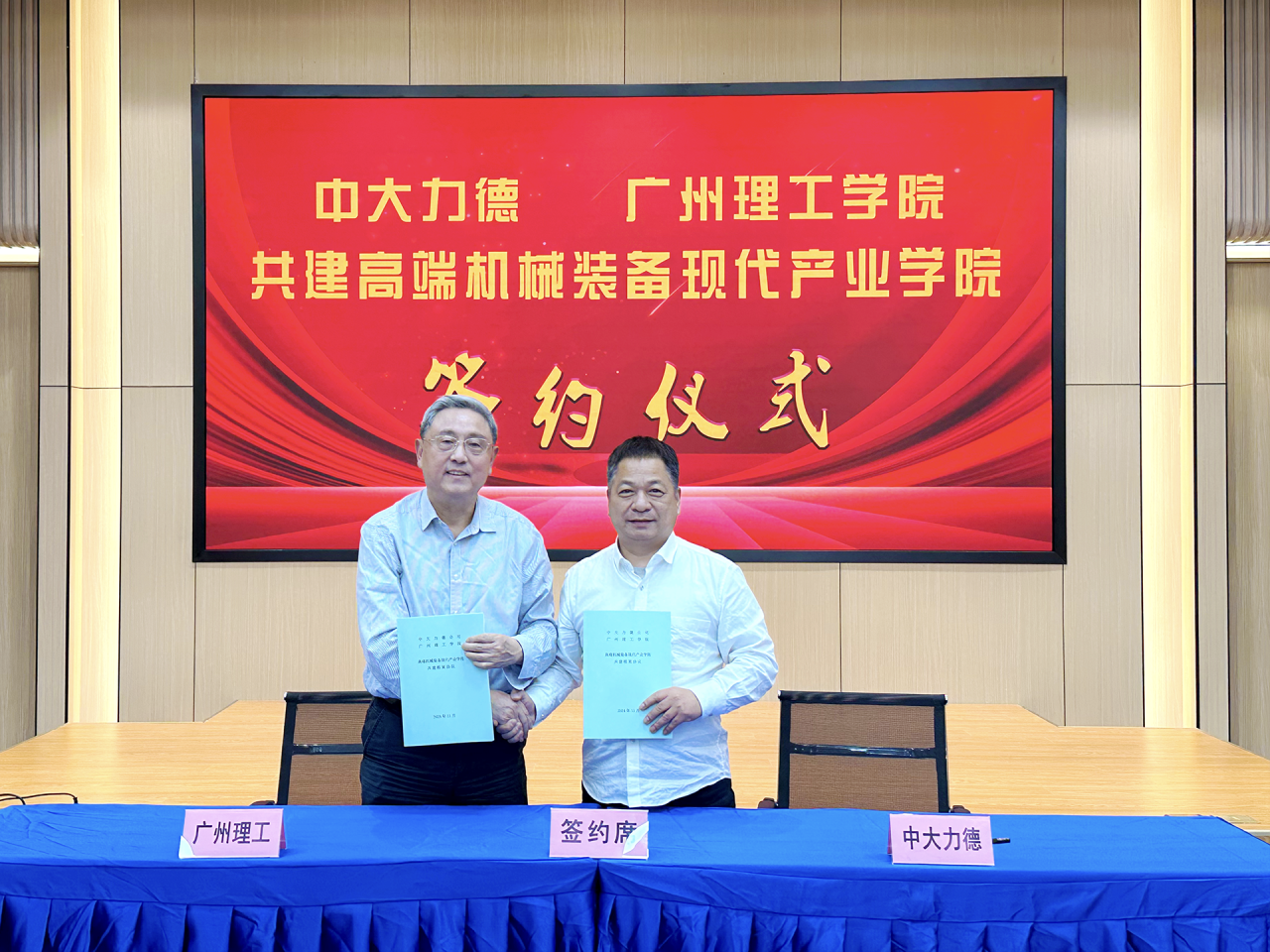 在全體與會人員的見證下,中大力德董事長岑國建與廣州理工胡社軍校長共同簽署了校企高端機械裝備現(xiàn)代產(chǎn)業(yè)學院共建框架協(xié)議,這一舉措標志著雙方在人才培養(yǎng)、產(chǎn)學研合作等方面邁出了堅實的步伐。