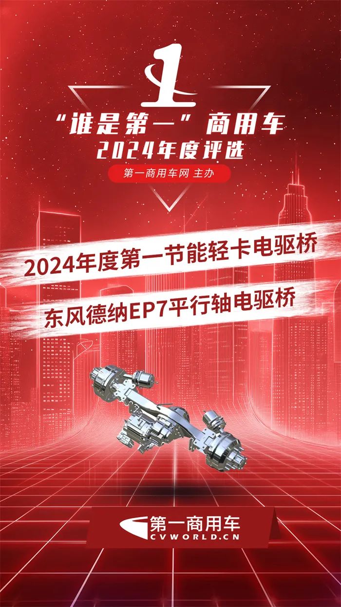 一年一度的“誰是第一”商用車年度評選活動由第一商用車網(wǎng)、卡車空間站和皮卡空間站聯(lián)合主辦,已發(fā)展成為商用車行業(yè)盛會。該活動以“為中國智造加油”為初衷,致力于以專業(yè)、嚴謹?shù)膽B(tài)度打造有影響力的平臺,發(fā)掘商用車行業(yè)中的優(yōu)秀品牌,樹立標桿企業(yè),推動行業(yè)健康發(fā)展。東風德納本次榮獲“2024年度第一節(jié)能輕卡電驅橋”大獎,再次印證了東風德納在電驅橋領域強大的研發(fā)實力和商用車車橋領域的領軍地位。