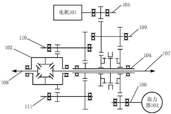 專利摘要:本申請公開了一種電驅(qū)橋減速器。該電驅(qū)橋減速器包括:電機(jī)、差速器、取力器及軸系;軸系的中間軸組中的第一中間軸和第二中間軸設(shè)置在軸系中的中心軸的同側(cè),中間軸組中的第二中間軸和第三中間軸設(shè)置在中心軸的兩側(cè);電機(jī)與取力器分別設(shè)置在中心軸的兩側(cè);中心軸空套在軸系的動(dòng)力輸出軸組中的第一輸出半軸上,并通過第二中間軸和第三中間軸與差速器相連接;差速器分別與第一輸出半軸和動(dòng)力輸出軸組中的第二輸出半軸連接;取力器通過軸系的取力器輸出軸與中心軸連接。本申請技術(shù)方案通過將電機(jī)、軸系、取力器設(shè)置在動(dòng)力輸出軸組的中心線兩側(cè),解決了現(xiàn)有技術(shù)將減速器集成到橋殼之后由于電驅(qū)橋整體受力不佳,導(dǎo)致電驅(qū)橋的承載能力較低的問題。