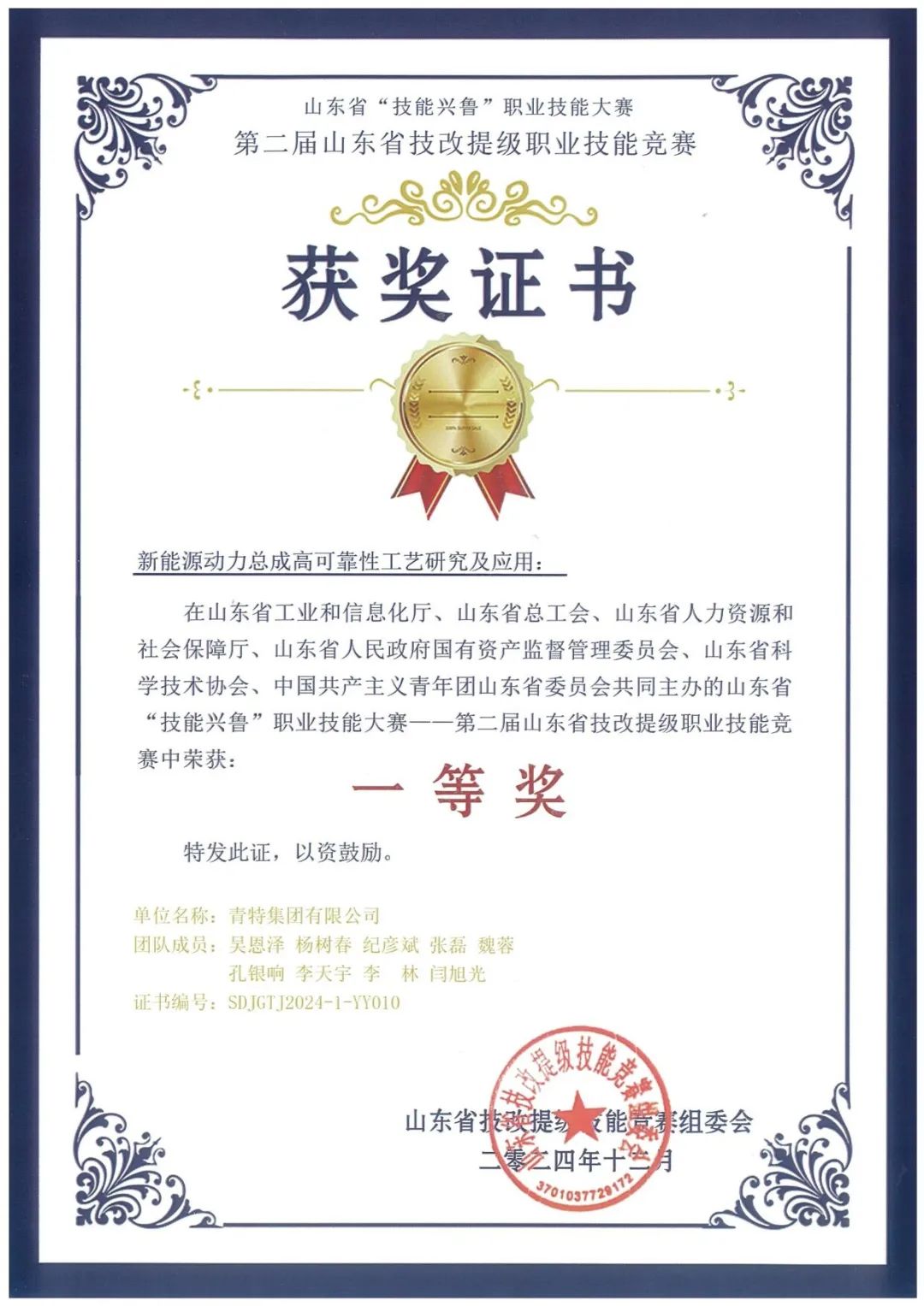 12月3日-4日,由山東省工業和信息化廳、省總工會、省人社廳等省屬六部門聯合舉辦的第二屆山東省技改提級職業技能競賽在德州成功舉行,青特集團技術中心參賽項目“新能源動力總成高可靠性工藝研究及應用”成功突圍,獲評一等獎。