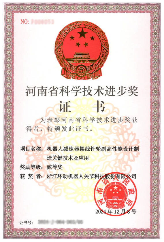 2024年12月9日,省委、省政府在鄭州隆重舉行全省科學(xué)技術(shù)獎(jiǎng)勵(lì)大會(huì),對2024年度省科學(xué)技術(shù)獎(jiǎng)獲獎(jiǎng)?wù)哌M(jìn)行表彰。環(huán)動(dòng)科技參與的《機(jī)器人減速器擺線針輪副高性能設(shè)計(jì)制造關(guān)鍵技術(shù)及應(yīng)用》項(xiàng)目,榮獲2024年度河南省科學(xué)技術(shù)進(jìn)步獎(jiǎng)二等獎(jiǎng)。